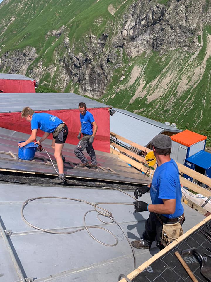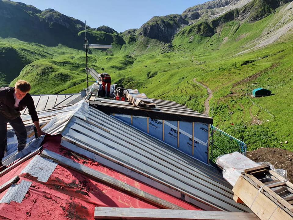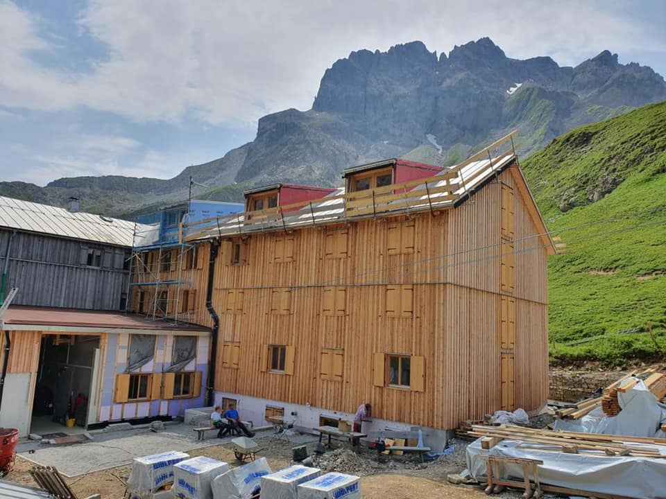 Arbeiten an der Kemptener Hütte im Außenbereich.